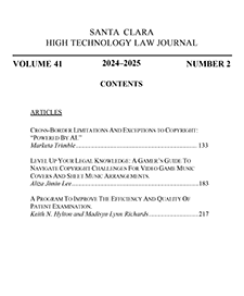 The Santa Clara High Technology Law Journal is an independent scholarly legal publication founded in 1984 by the students of Santa Clara University School of Law. For over twenty-five years, the Journal has achieved national and international circulation and recognition as a leading forum for multidisciplinary discourse on emerging issues at the juncture of technology, the law, and public policy.