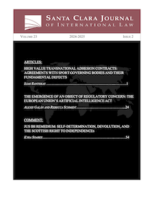 Welcome to the Santa Clara Journal of International Law! Founded in 2002, the Santa Clara Journal of International Law is committed to publishing articles that are at the forefront of scholarly debate in the field of international law and to create the best environment for the open exchange of diverse ideas.